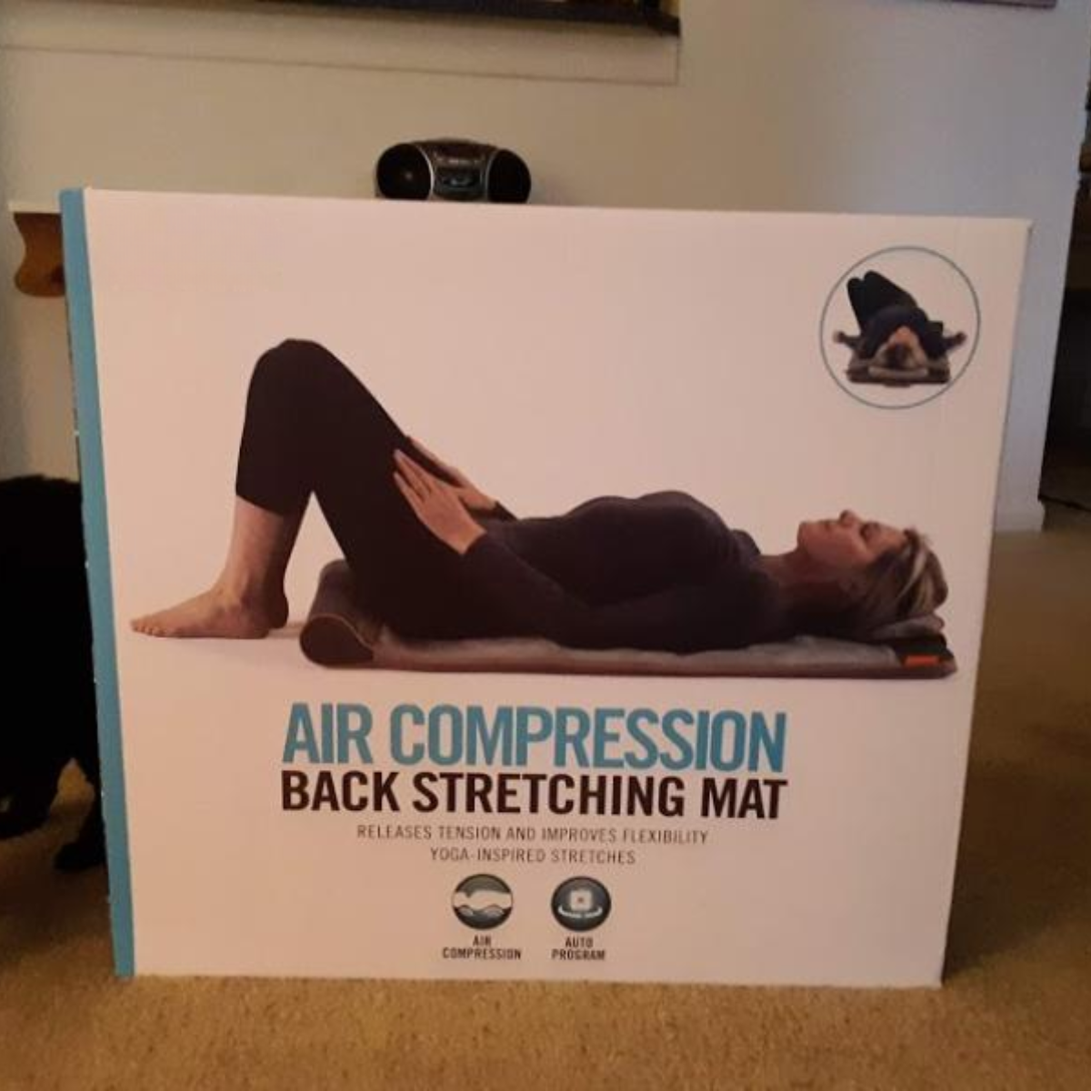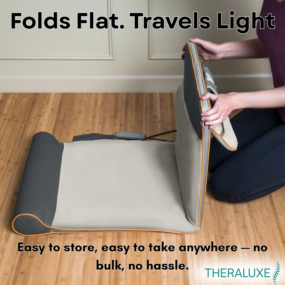 TheraLuxe is a relaxing mat you lie on. It gently fills with air and moves in waves under your back to stretch your spine, loosen tight muscles, and reduce pressure.